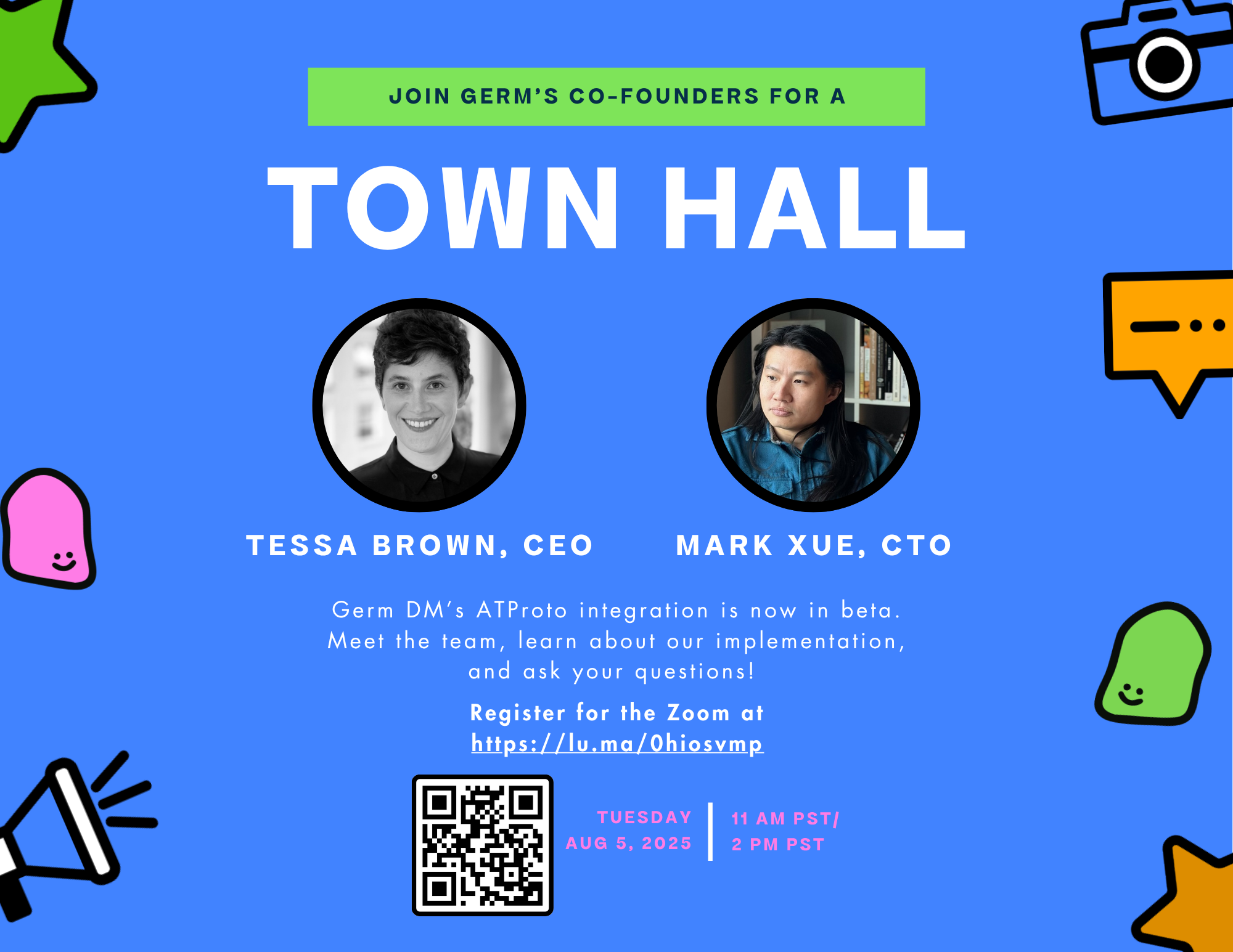Join a Germ DM Q&A with leading cryptographer and protocol engineer Richard Barnes on Tuesday, August 19 at 10am PST via his Bluesky.