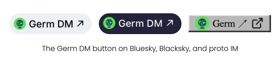 Here’s how the Germ button looks today on Bluesky, Blacksky, and proto IM: